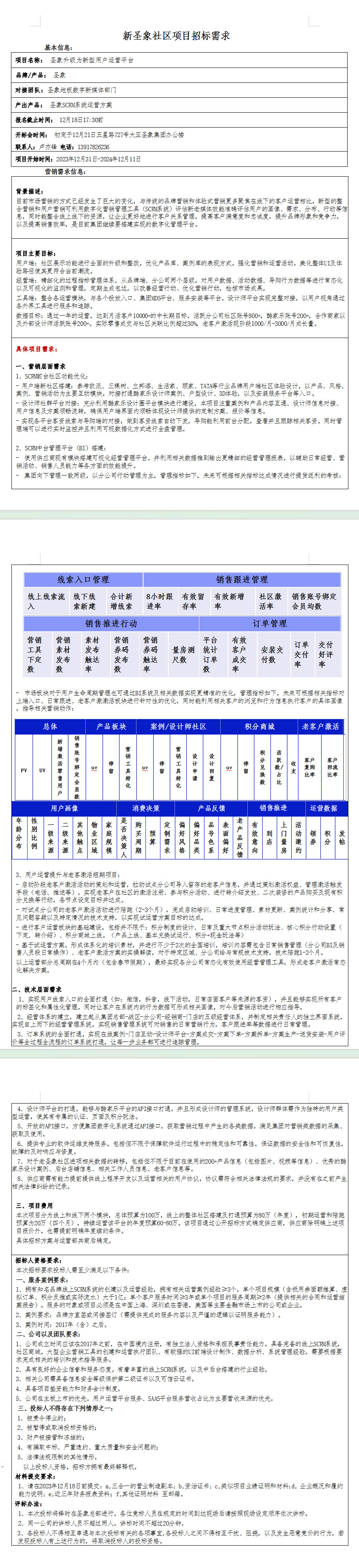 新圣象社區項目招標需求