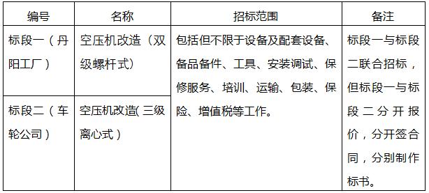 2、 工程規(guī)模: 標(biāo)段一為雙級(jí)螺桿式空壓機(jī)3臺(tái)及流量計(jì)控制器等;標(biāo)段二為三級(jí)離心式空壓機(jī)1臺(tái)、零氣耗壓縮熱吸干機(jī)1臺(tái)及開關(guān)柜流量計(jì)等。詳見招標(biāo)文件。