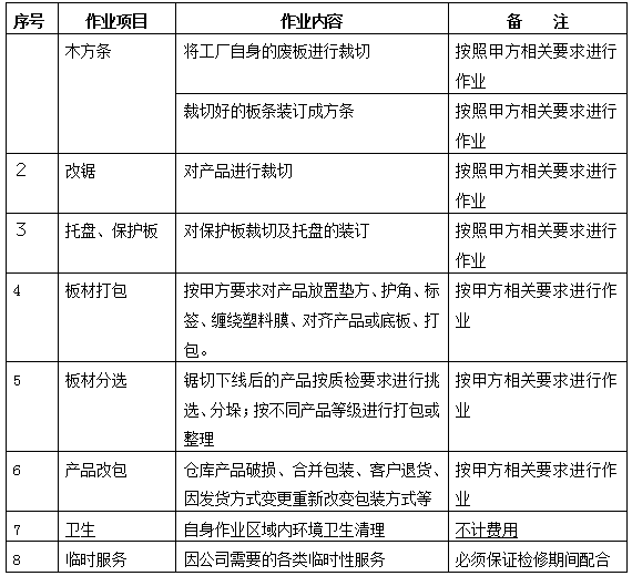 1、招標方提供所需的木質原材料(刨花板、纖維板等)。