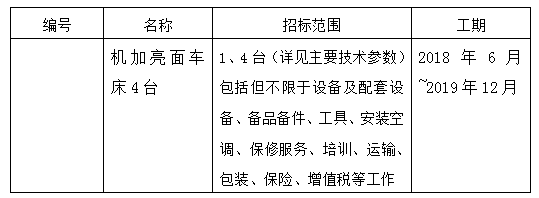 本招標項目機加亮面車床4臺已批準建設,招標人為 大亞車輪制造有限公司 ,建設資金來自自籌 (資金來源)。項目已具備招標條件,現進行公開招標,特邀請有興趣的潛在投標人(以下簡稱申請人)提出資格預審申請。
