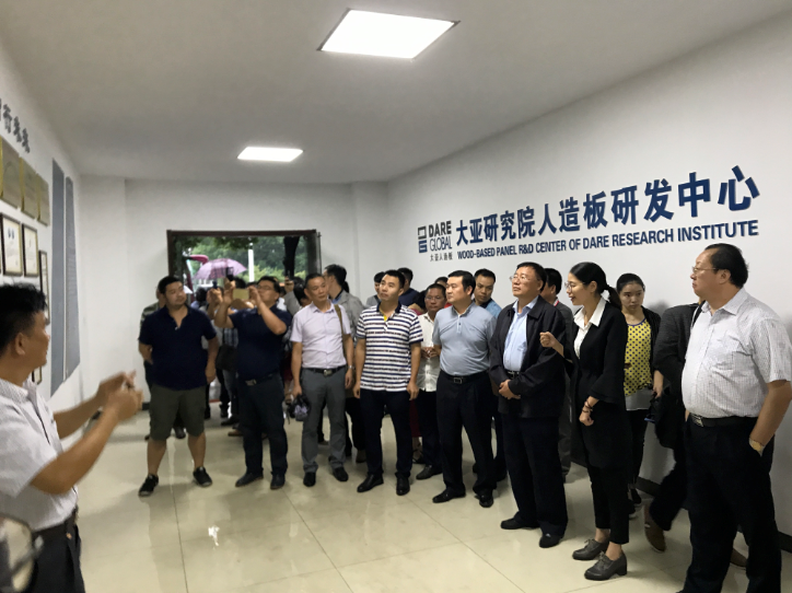 仲總首先向代表團介紹了陳曉龍董事長提出的包括綠色產業鏈戰略、大家居戰略、品牌發展戰略等集團五大戰略,并從生產管理、技術研發、產品創新、品牌建設、綠色制造等方面著重向客人介紹了大亞人造板集團近年來取得的成績。仲總表示,希望通過此考察交流,能進一步增進廣西林產協會及廣西林業企業代表對大亞人造板的認識和了解,能進一步增強大亞人造板與廣西林產協會及有關林業企業的溝通和聯系,能進一步促進大亞人造板與廣西林產行業的合作和交流。