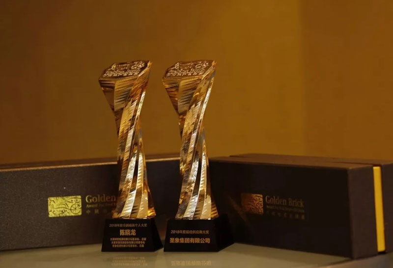 今年圣象不僅再次斬獲中國地產(chǎn)金磚獎·2018年度最佳供應商大獎,大亞圣象家居股份有限公司董事長,圣象集團有限公司董事長陳曉龍先生也榮獲中國地產(chǎn)金磚獎·2018年度卓越成就個人大獎。