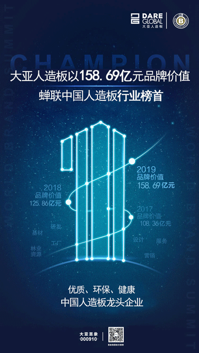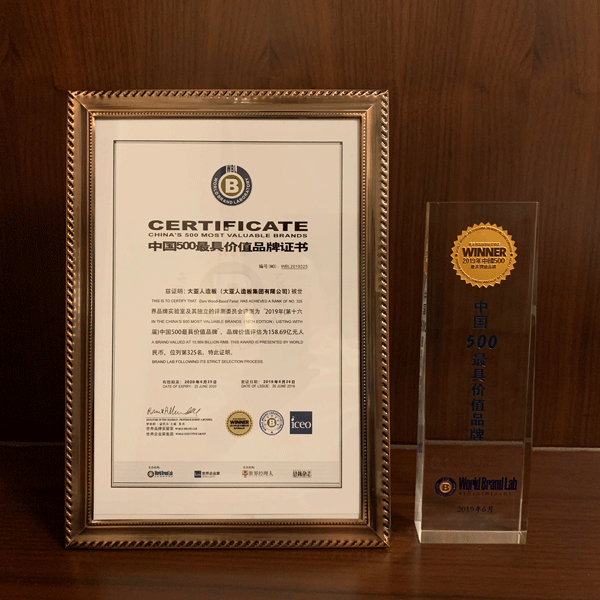由世界品牌實驗室(World Brand Lab)主辦的(第十六屆)“世界品牌大會”于6月26日在北京舉行,會上發布了2019年《中國500最具價值品牌》分析報告。在這份基于財務數據、品牌強度和消費者行為分析的年度報告中,圣象以502.85億元人民幣品牌價值三冠中國家居行業榜首,大亞人造板以158.69億元品牌價值蟬聯中國人造板行業榜首!
