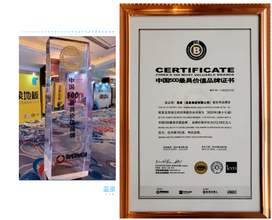 8月5日,由世界品牌實驗室(World Brand Lab)主辦的(第十七屆)“世界品牌大會”在北京舉行,會上發(fā)布了2020年《中國500最具價值品牌》分析報告。在這份基于財務(wù)數(shù)據(jù)、品牌強度和消費者行為分析的年度報告中,圣象以572.59億元人民幣品牌價值再次入選,榮膺第102位,繼續(xù)領(lǐng)跑中國家居行業(yè);大亞人造板以182.81億元品牌價值蟬聯(lián)中國人造板行業(yè)榜首,品牌排名322位,價值增幅15.2%。