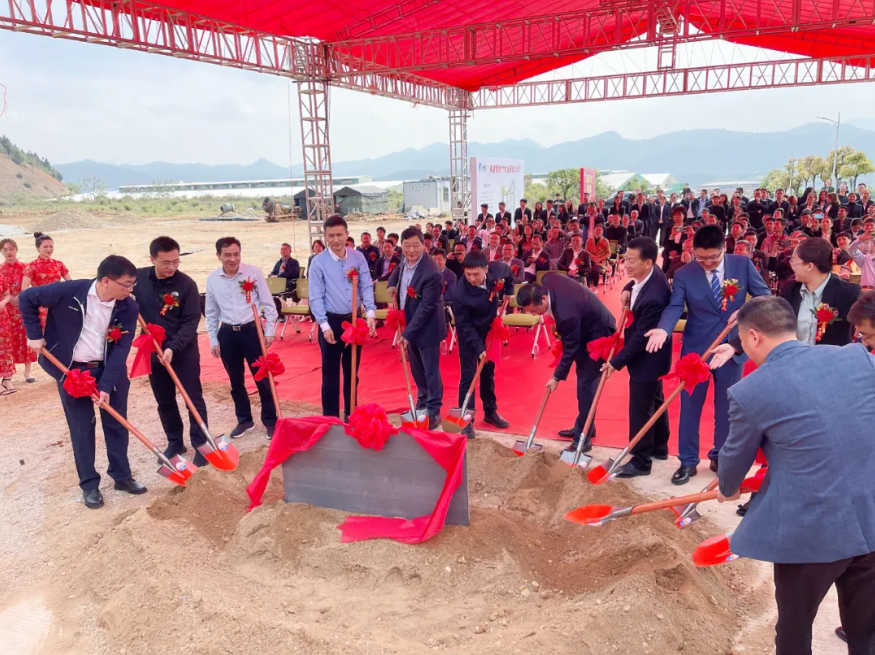 由建甌市市委書(shū)記陳建新先生、建甌市副書(shū)記、市長(zhǎng)周安有先生、建甌市市委副書(shū)記楊鑾女士、建甌市市委常委、副市長(zhǎng)陳錫明先生、建甌市市人大副主任市委辦主任葉華先生、建甌市副市長(zhǎng)翁成峰先生、圣象集團(tuán)董事長(zhǎng)陳建軍先生、大亞圣象基金總裁陳海平先生、圣象集團(tuán)副總裁劉海濤先生、圣象集團(tuán)副總裁韓海峰先生、圣象華宇集團(tuán)副董事長(zhǎng)郭學(xué)婢先生、圣象華宇集團(tuán)居怡工廠總經(jīng)理王俊先生12名嘉賓為為圣象華宇集團(tuán)居怡公司2期項(xiàng)目奠基。揮動(dòng)金鏟,培土奠基!助力圣象,事業(yè)發(fā)展!助力建甌,偉業(yè)騰飛!