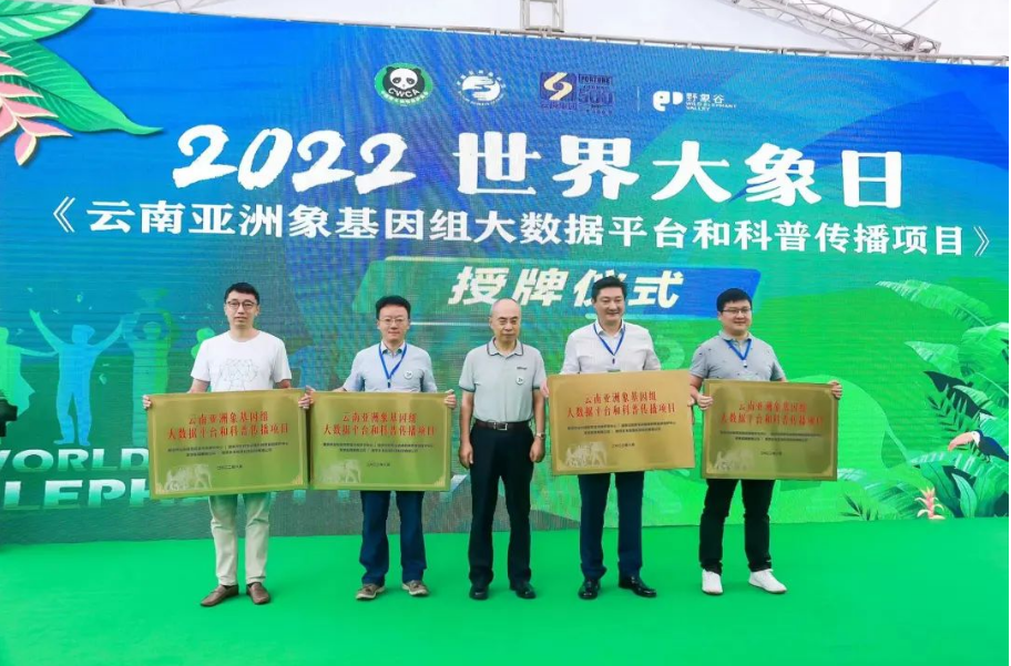 在世界大象日當天的開幕式上,一個亮眼的環(huán)節(jié)就是”云南亞洲象基因組大數(shù)據(jù)平臺和科普傳播”項目作為亞洲象科研和保護項目被正式確立,國家林業(yè)和草原局動植物保護司張志忠司長向項目科研承擔單位授牌,這標志著該項目的正式啟動。